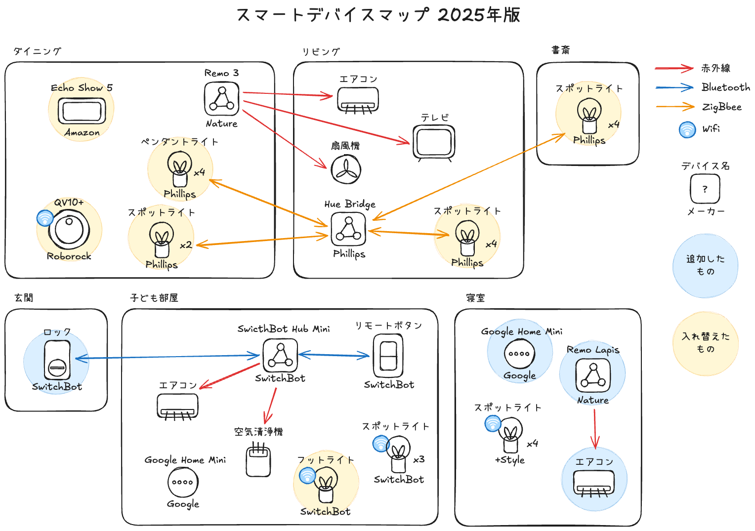 毎年恒例の振り返り記事、にしようとしているスマートホームデバイスマップ。 昨年のものはこちら。